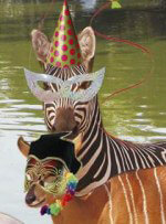 - במתחם הפינגווינים- צביעת מסכות ליצן מקסימות.
