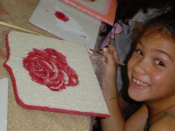 לימוד יסודות העיטור על כלים שונים (קרמיקה עץ וכד') תוך שימוש במגוון רחב של חומרים שאינם רעילים ( צבעים, גלזורות, עפרונות, משחות עיצוב, חול צבעוני, חרוזים, פייטים, טוליפים ועוד.)
