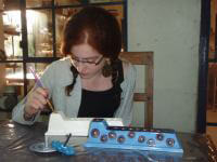 כל אחד יכול לבחור לעצמו כלי ולמצוא על שולחנות העבודה את כל הדרוש לציור: צבעים, מכחולים, שבלונות, דוגמאות שונות, חוברות וספרים בהם ניתן להיעזר.