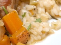 בסיר עם מעט שמן מטגנים את הבצל והסלרי עד שקיפות. מוסיפים את השום והאורז ומטגנים תוך כדי בחישה על להבה גבוהה. מוסיפים את היין והסוכר ובהדרגה את ציר הירקות, עד שהאורז עשוי מבחוץ ומעט קשה מבפנים. מסירים מהאש ומוסיפים את החמאה והפרמז'ן.
