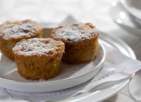 - יוצקים 2 כפות מן התערובת לכל שקע בתבנית מאפינס (לתבנית מיני-מאפינס יוצקים כף גדושה), עד 2/3 גובה כל שקע ולא יותר. מכניסים לתנור ואופים במשך 25 דקות (מיני-מאפינס אופים במשך 15 דקות) או עד שקיסם הנננעץ במאפינס יוצא יבש או כשעליו פירורים. מוציאים, מצננים כשעה ומגישים.