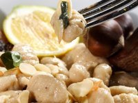 מקפיצים את הניוקי במחבת עם חמאה, שקדים ופרוסות הערמונים למשך כ-3 דקות. ממליחים ומפלפלים לפי הטעם.